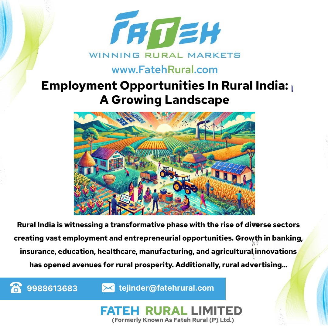 Rural India is witnessing a transformative phase with the rise of diverse sectors creating vast employment and entrepreneurial opportunities. Growth in banking, insurance, education, healthcare, manufacturing, and agricultural innovations has opened avenues for rural prosperity. Additionally, rural advertising, including printing, filmmaking, and implementation agencies, is a significant job generator.